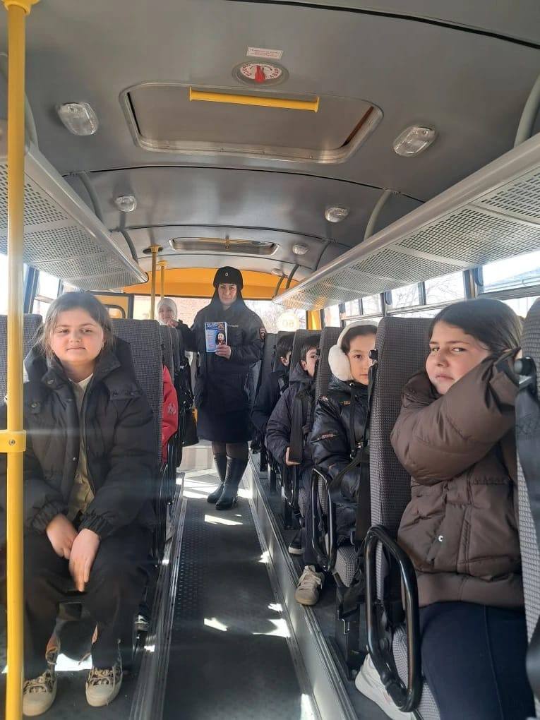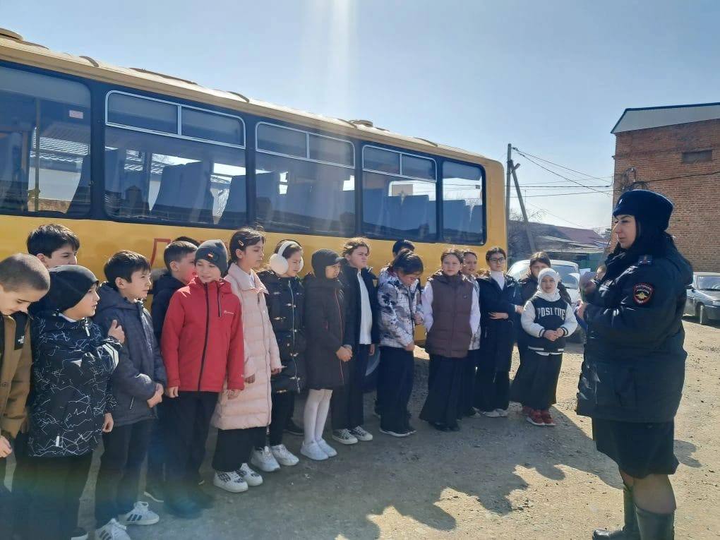 В ходе мероприятия автоинспекторы провели профилактические беседы с юными пассажирами школьного автобуса средней школы п. Эркен-Шахар о соблюдении Правил дорожного движения, а также с водителем автобуса, осуществляющим перевозку детей, напомнив ему о необходимости и важности соблюдения Правил дорожного движения.