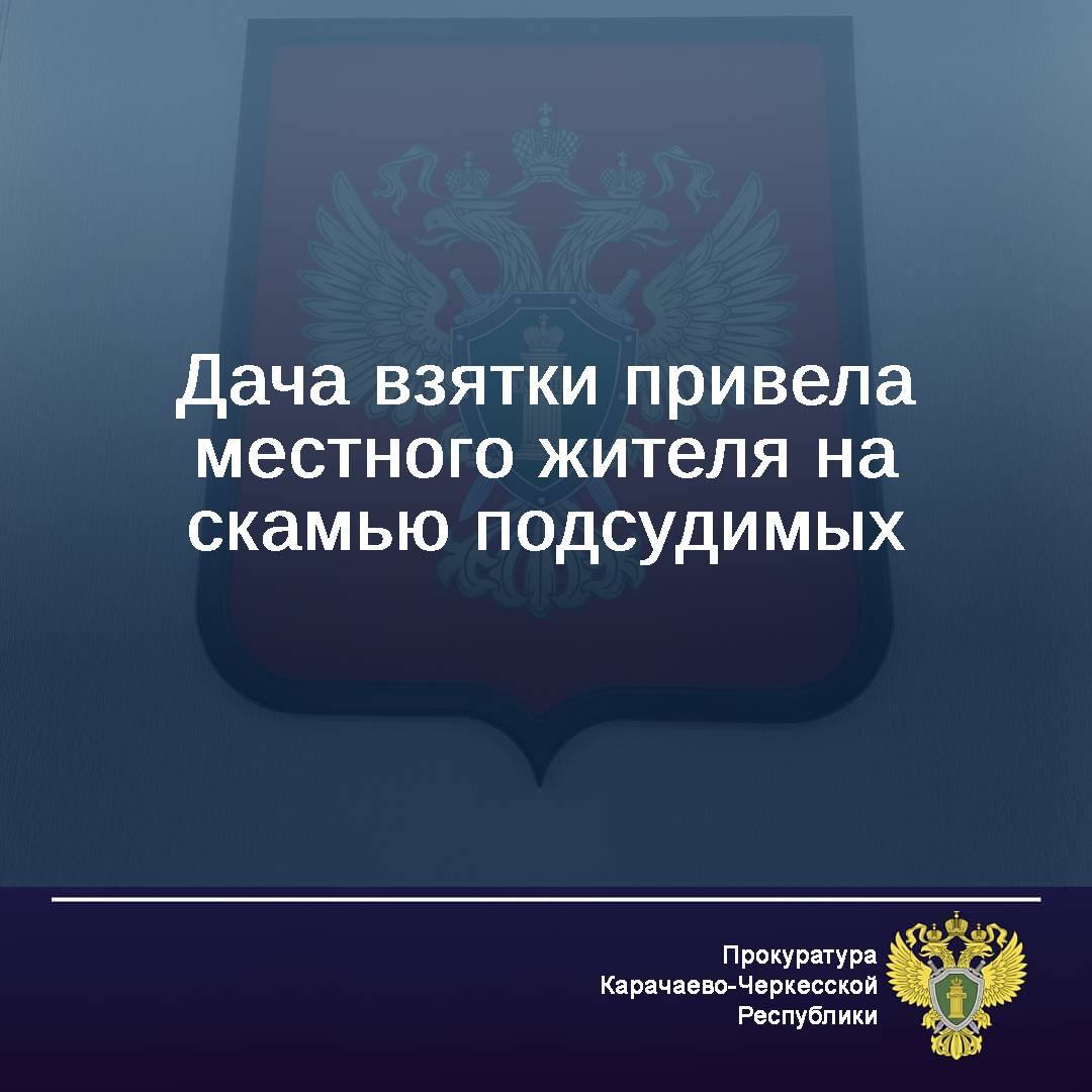 Прокуратура Карачаево-Черкесской Республики направила в суд уголовное дело в отношении местного жителя. Он обвиняется по п. «б» ч. 4 ст. 291 УК РФ (дача взятки должностному лицу лично за совершение заведомо незаконных действий, в крупном размере).