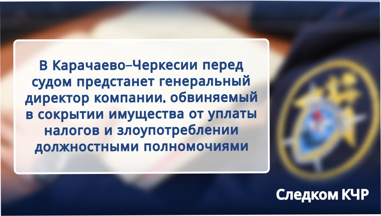 В Карачаево-Черкесии перед судом предстанет генеральный директор компании, обвиняемый в сокрытии имущества от уплаты налогов и злоупотреблении должностными полномочиями