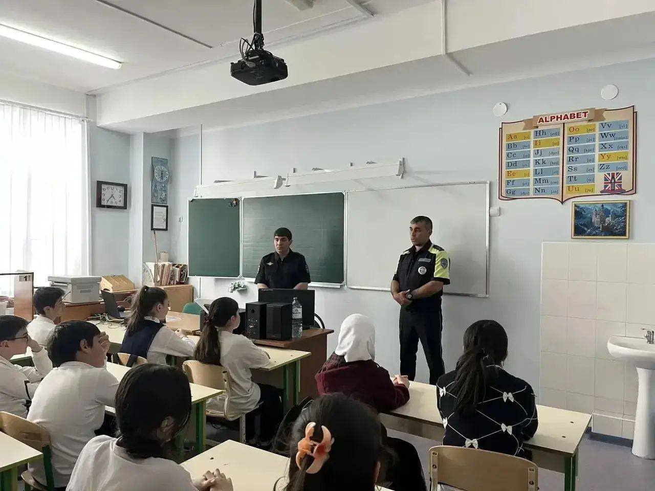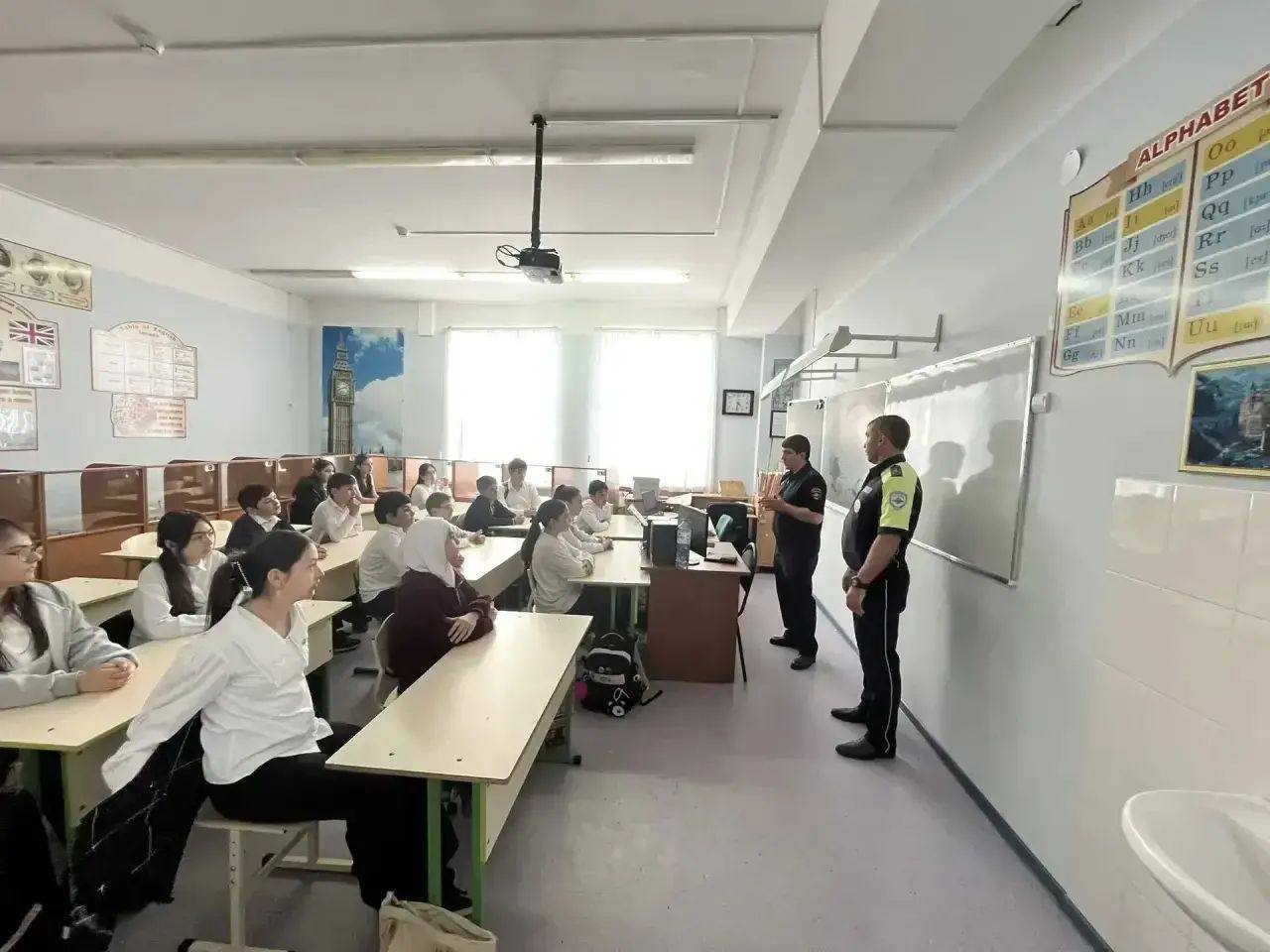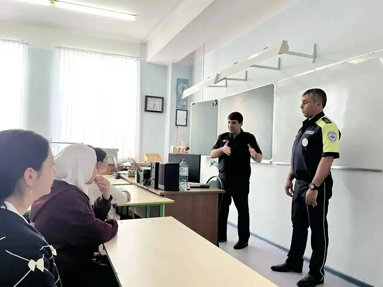 В рамках беседы автоинспекторы совместно с советником директора по воспитанию Татаркуловой Алиной Энверовной