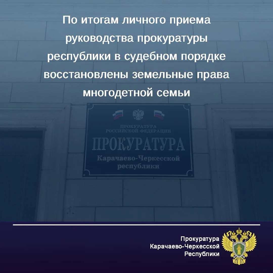 В связи с чем межрайонная прокуратура предъявила иск в суд об обязании администрации Адыге-Хабльского муниципального района выделить бесплатно в собственность многодетной семье земельный участок.