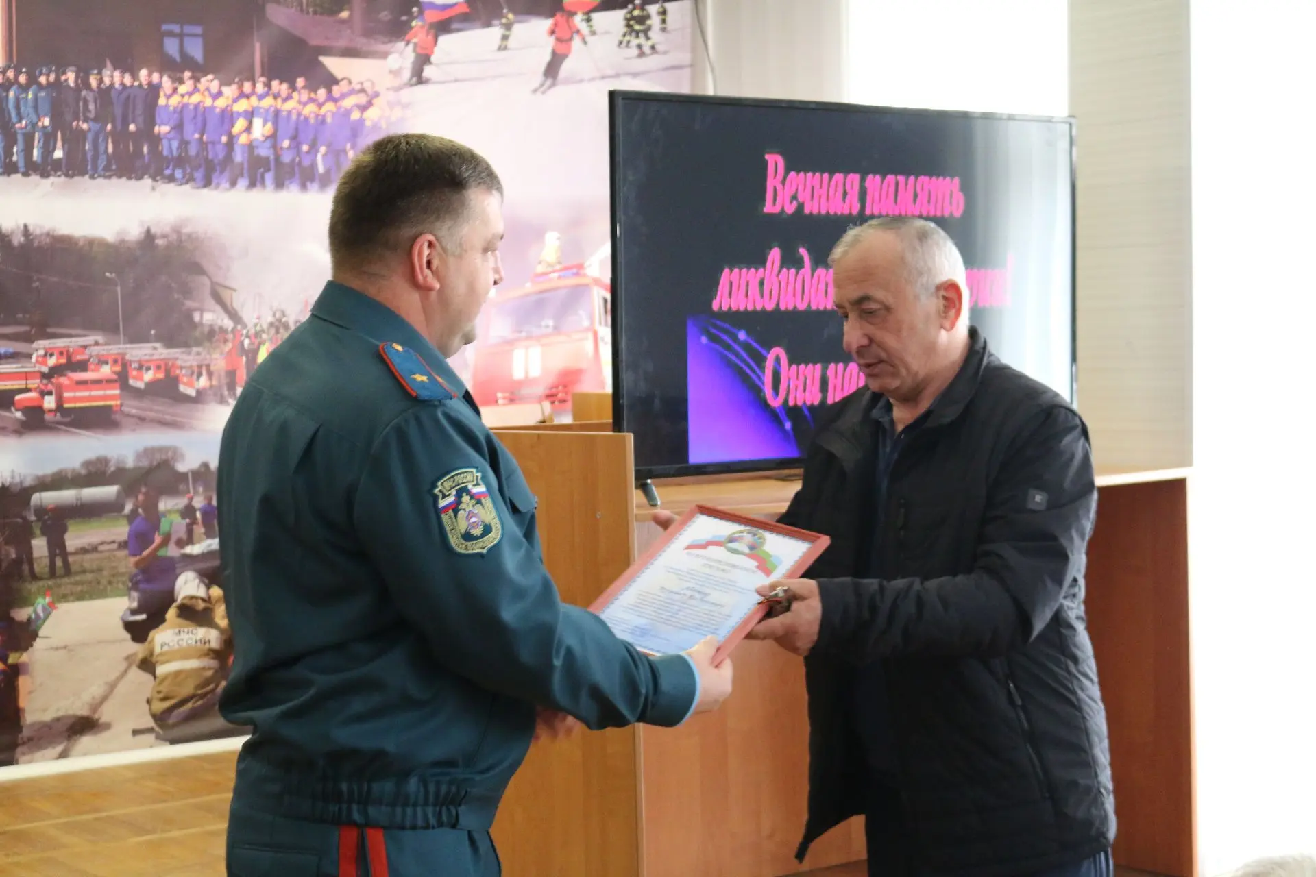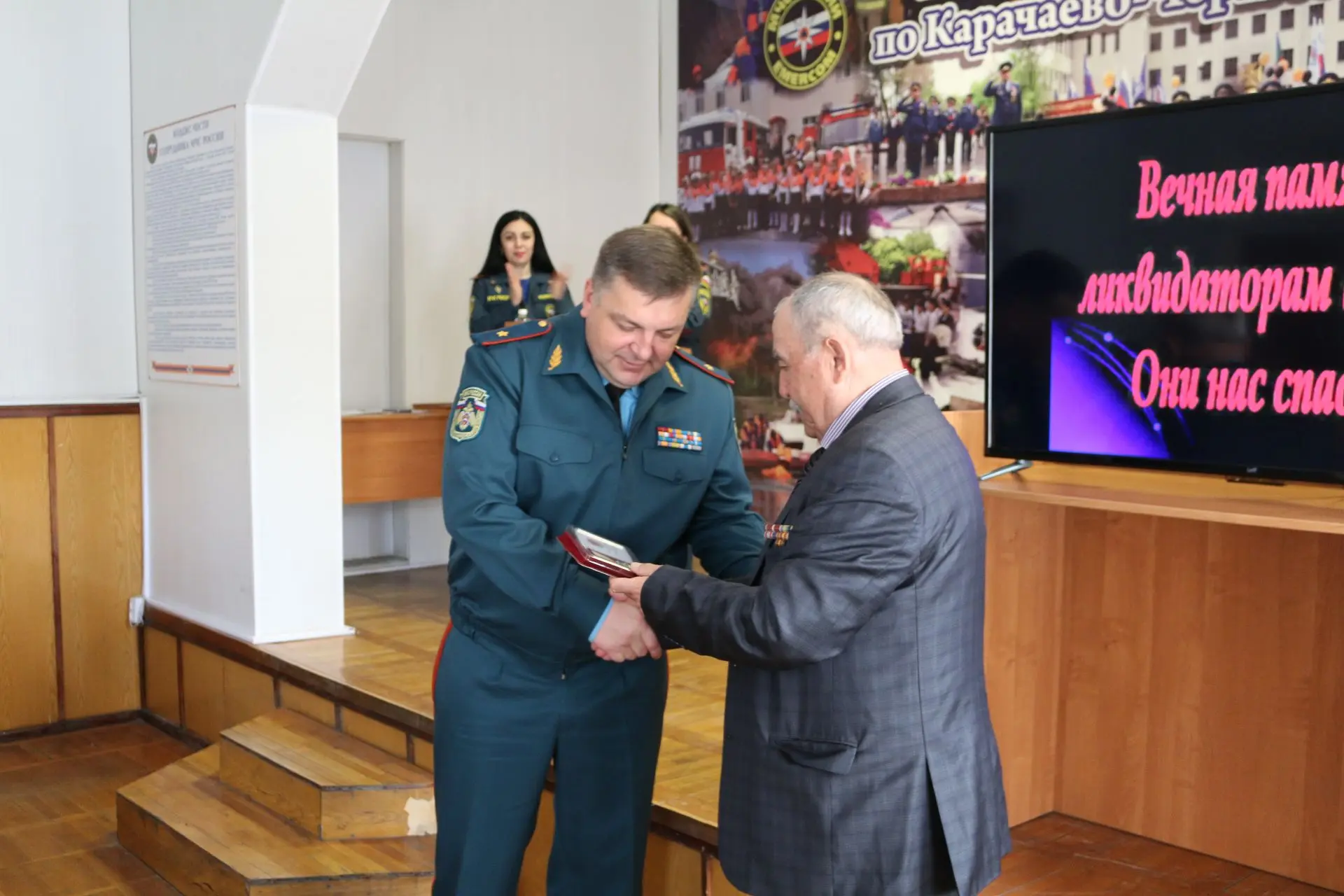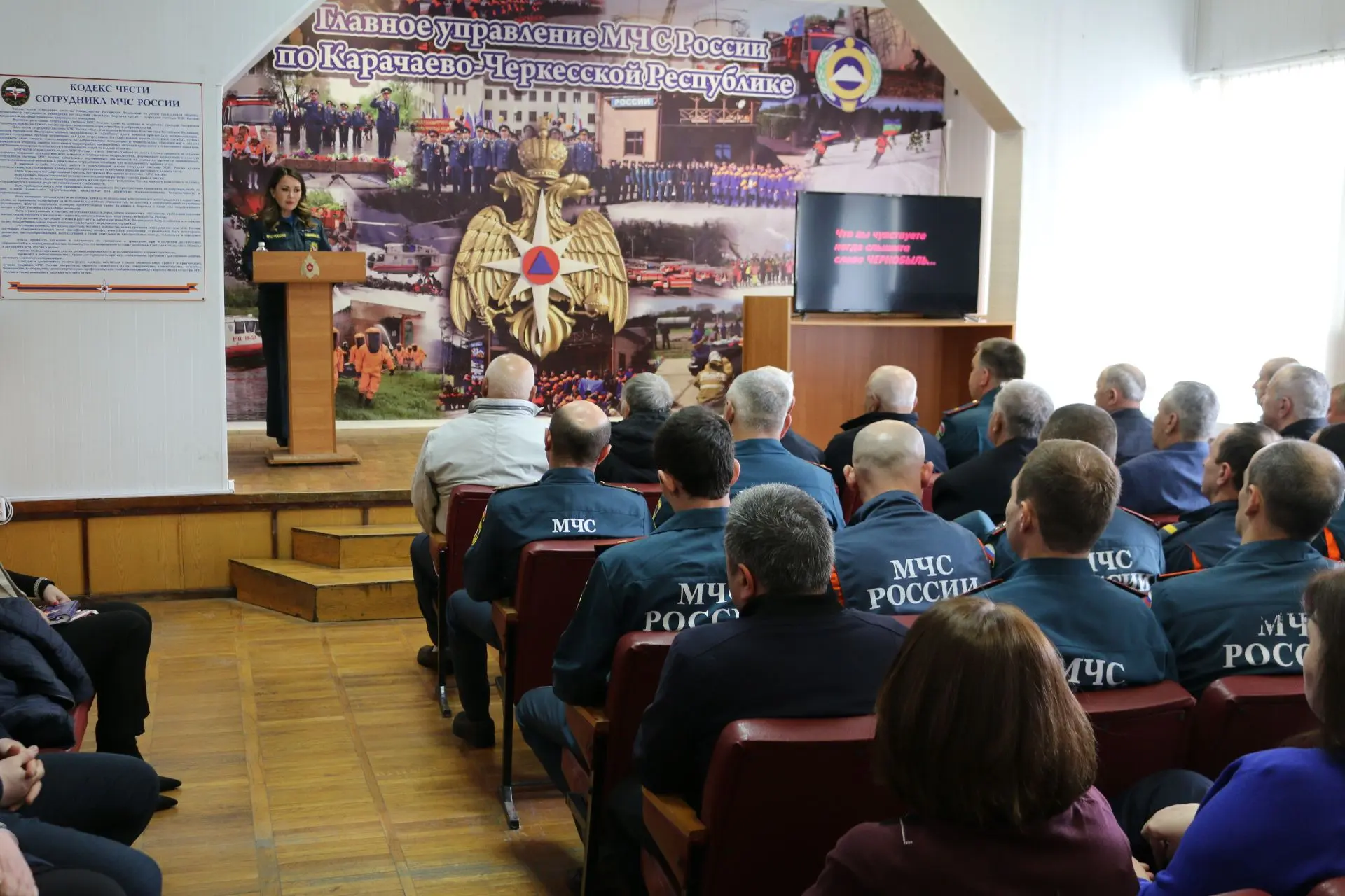 В актовом зале Главного управления МЧС России по Карачаево-Черкесской Республике состоялась встреча личного состава ведомства с ликвидаторами аварии на Чернобыльской АЭС – руководством и ветеранами регионального отделения общественной организации «Союз «Чернобыль» России».