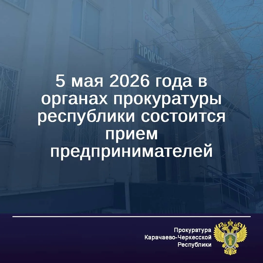 В целях оказания помощи по правовым вопросам, реализации права на личное обращение в органы прокуратуры, а также незамедлительного пресечения нарушений прав представителей бизнес-сообщества 5 мая 2026 с 11 до 13 часов по московскому времени в органах прокуратуры Карачаево-Черкесской Республики будет организован прием предпринимателей.