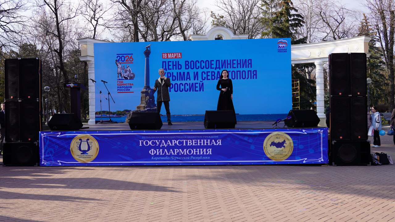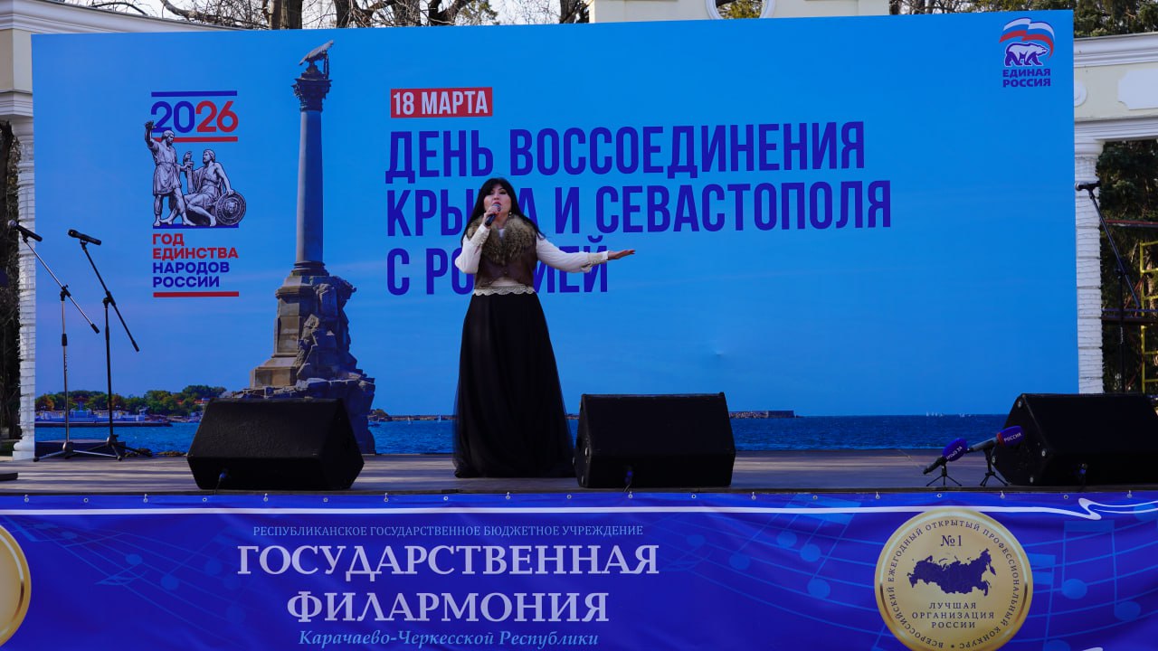В Черкесске по инициативе партии «Единая Россия» прошел праздничный концерт, посвященный 12-летней годовщине воссоединения Крыма и города-героя Севастополя с Российской Федерацией.