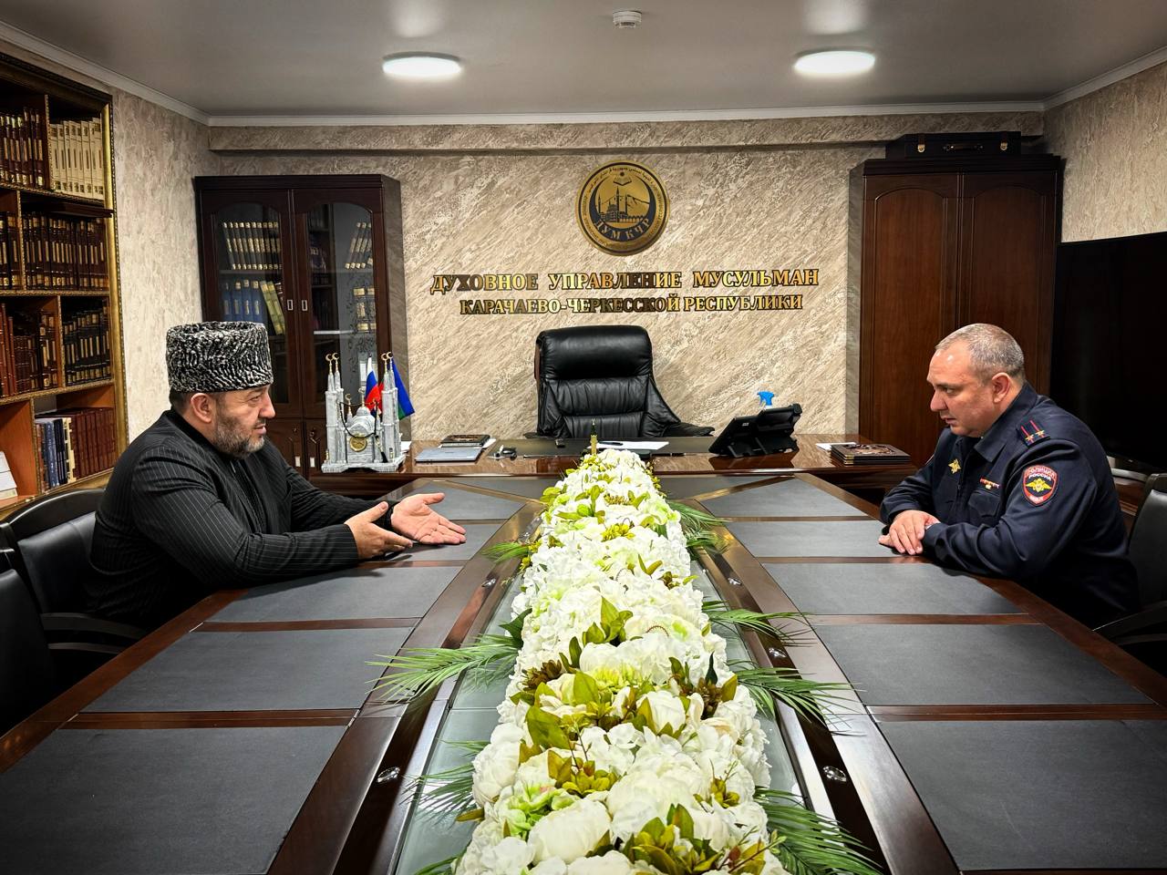 Сегодня состоялась встреча между Муфтием Карачаево-Черкесской Республики Мухаммад-хаджи Эркеновым и начальником Управления Госавтоинспекции МВД по Карачаево-Черкесской Республике, подполковником полиции Рамазаном Владимировичем Шилибиевым.