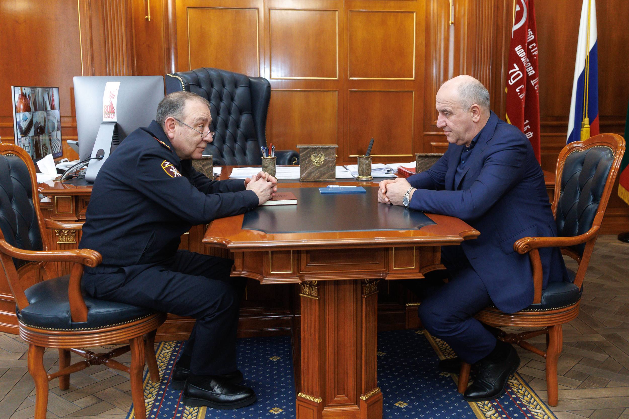 В рамках встречи с Эдуардом Ансаровичем особое внимание уделили итогам оперативно-служебной деятельности ведомства, отметив высокий уровень взаимодействия между территориальным органом Росгвардии и органами исполнительной власти республики.