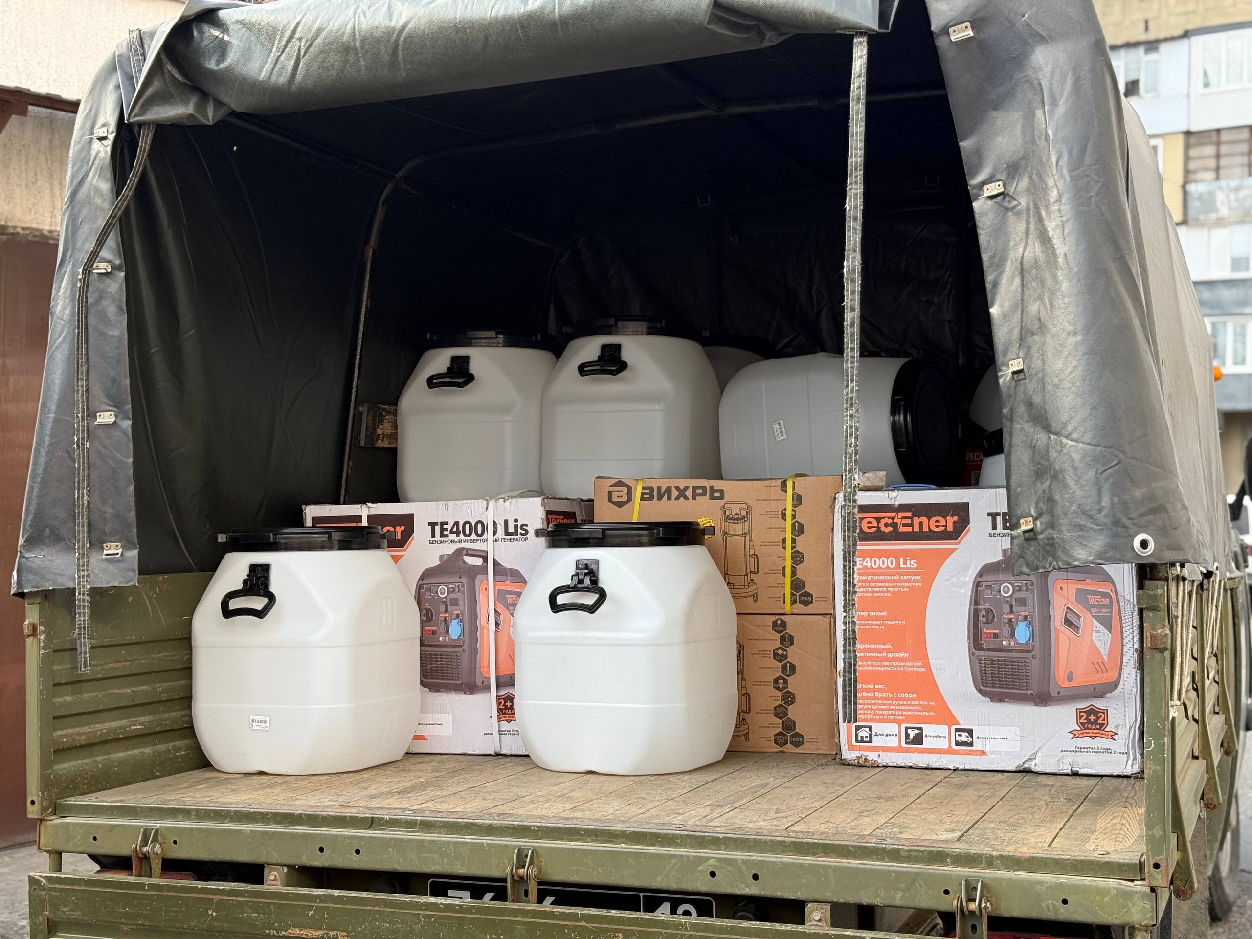 В груз вошли, бензиновые генераторы, насосы, питьевая вода, резервуары для воды и другие необходимые вещи, которые запрашивали военные.