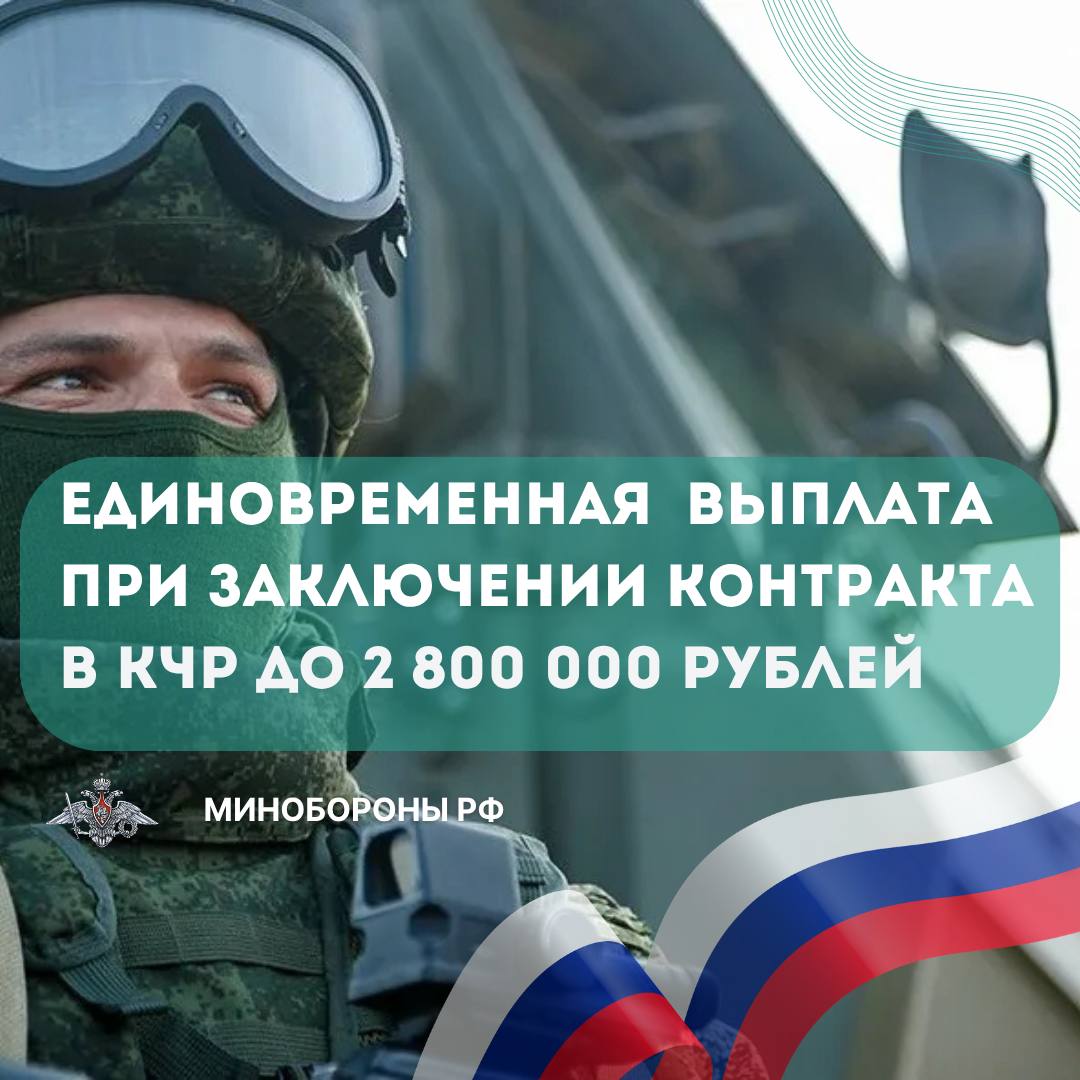 С учётом федеральной выплаты размер единовременной выплаты при заключении контракта с Минобороны страны в КЧР может составить до 2,8 млн рублей.