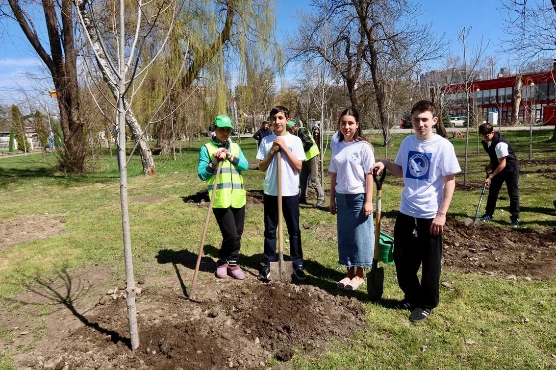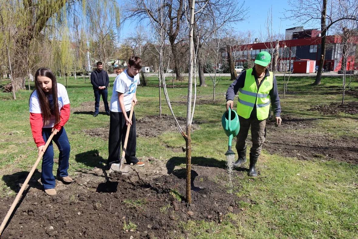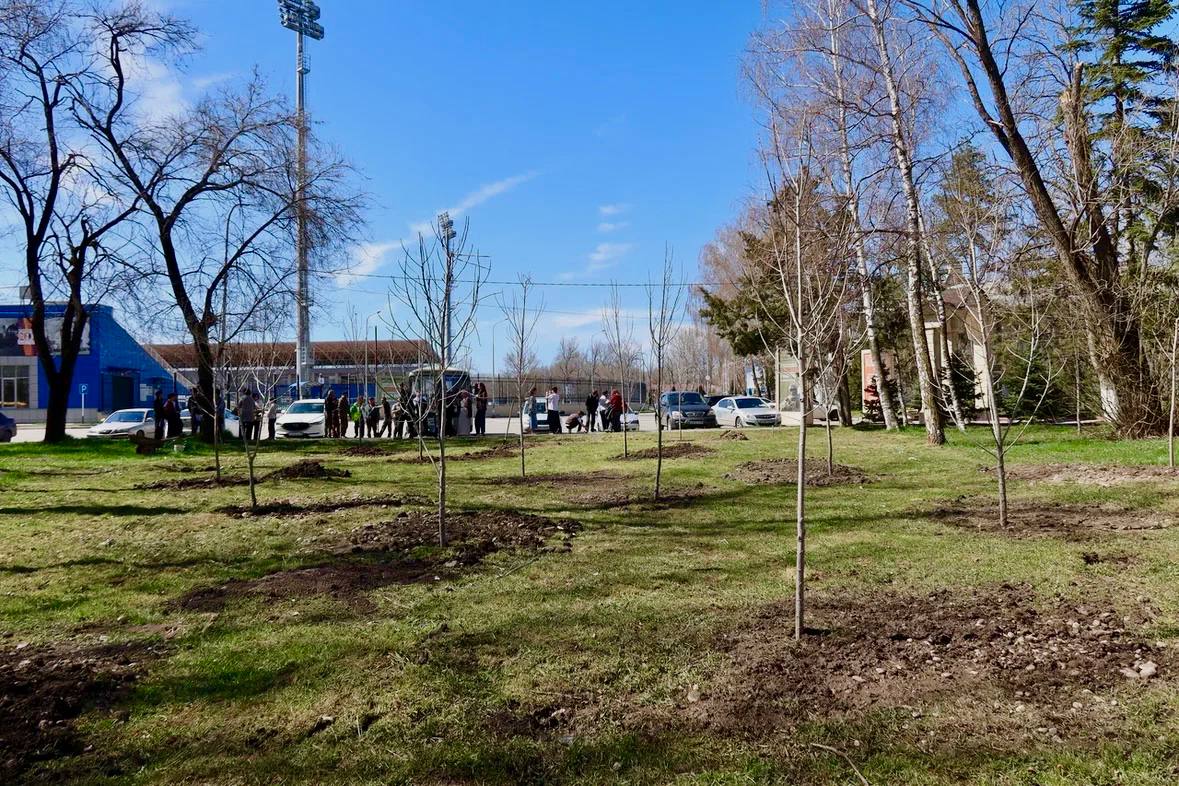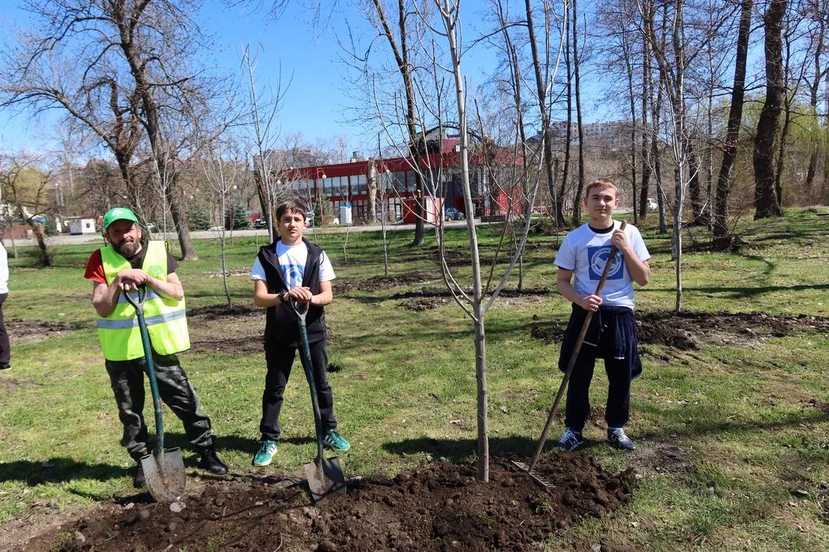 Еще 20 деревьев в память о защитниках Родины высадили в парке «Зеленый остров». Накануне праздника на территории гимназии №17 высадили сосны.