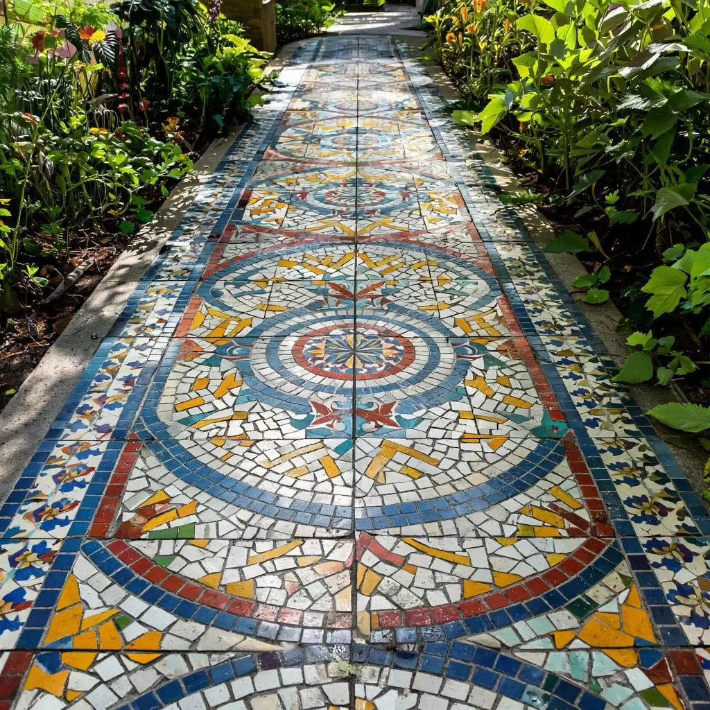 Креативным решением для придания индивидуальности саду может стать оформление бордюров клумб и дорожек. Это идеальная альтернатива стандартным подходам. Можно просто вкопать крупные куски плитки по краю дорожки, создавая текстурную границу. Более сложный вариант — создать мозаичную ленту, вдавливая осколки в слой цементного раствора. Это придаст вашему саду яркость и четкость контуров, особенно в сочетании с гравийными отсыпками.