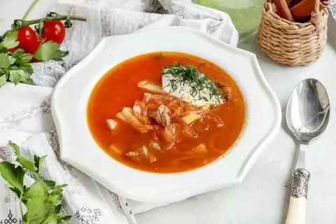 Бульон служит подложкой, а свинина становится основой насыщенного вкуса. Квашеная капуста добавляет характер, а овощи дают мягкость и текстуру. Всё вместе создаёт сытное, не перегруженное блюдо, которое легко адаптировать под вечерний стол.