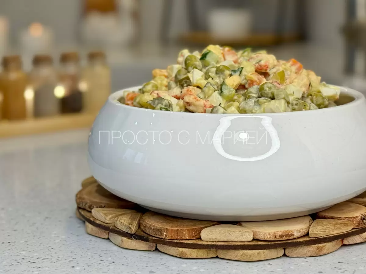 Сегодня у вас есть возможность сделать Оливье с неожиданной заменой. Вместо классической «докторской» колбасы предлагаются раковые шейки в рассоле, что придаст блюду новый, пикантный вкус.