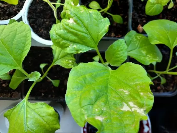 Семена баклажанов были посеяны в начале марта, когда перцы и тепличные помидоры уже росли полным ходом. После пересадки сеянцев в отдельные горшочки они мгновенно начали радовать зеленым ростом, благодаря хорошему грунту и подкормке. Однако вскоре на листьях появились белые пятна, которые стали сигналом тревоги.