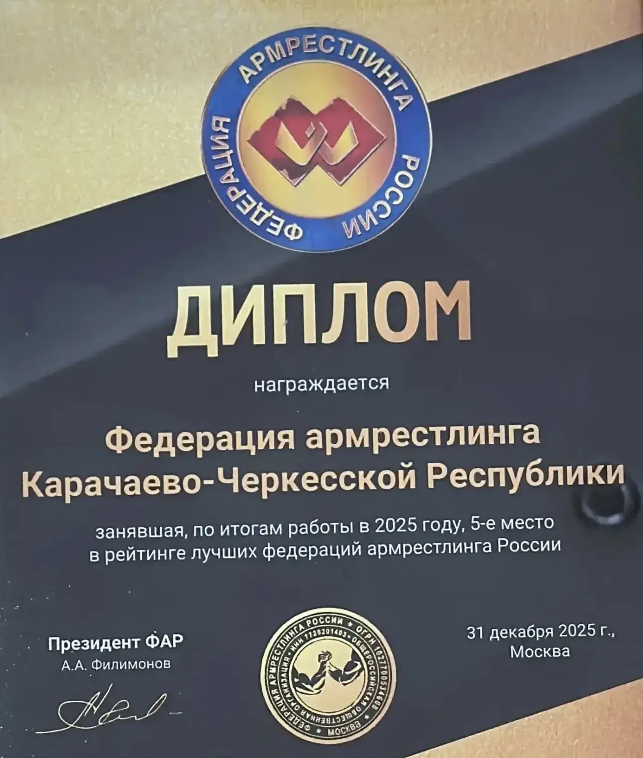 Федерация армрестлинга Карачаево-Черкесии вошла в ТОП-5 лучших среди 67 региональных федераций страны по итогам 2025 года
