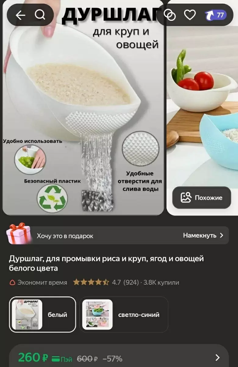 Правильная промывка риса, круп, ягод и овощей – это важный шаг к созданию вкусного и полезного блюда. Новый дуршлаг обеспечивает: