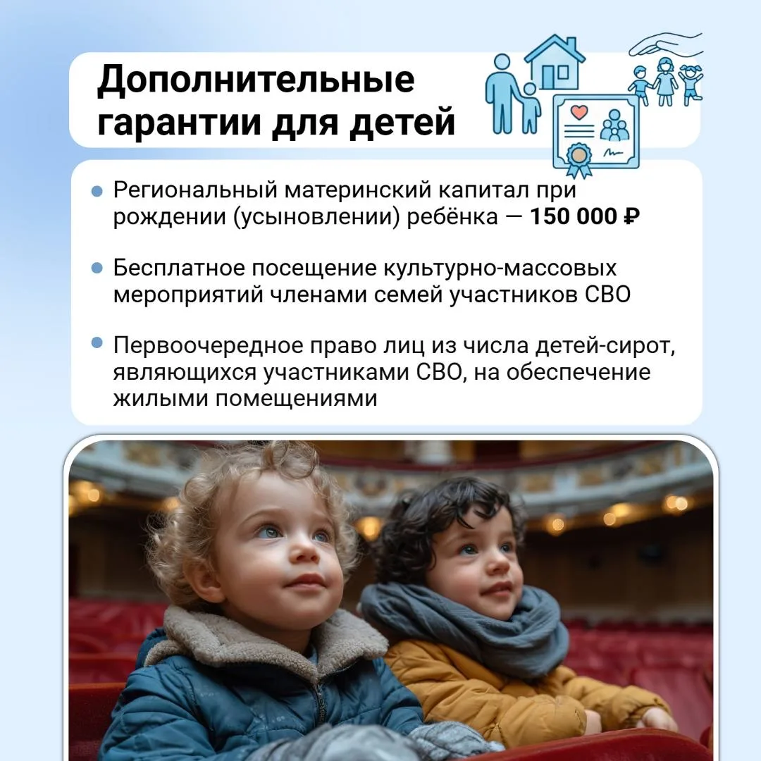 О том, какие меры поддержки в регионе предоставляются детям участников СВО, рассказали в наших карточках.