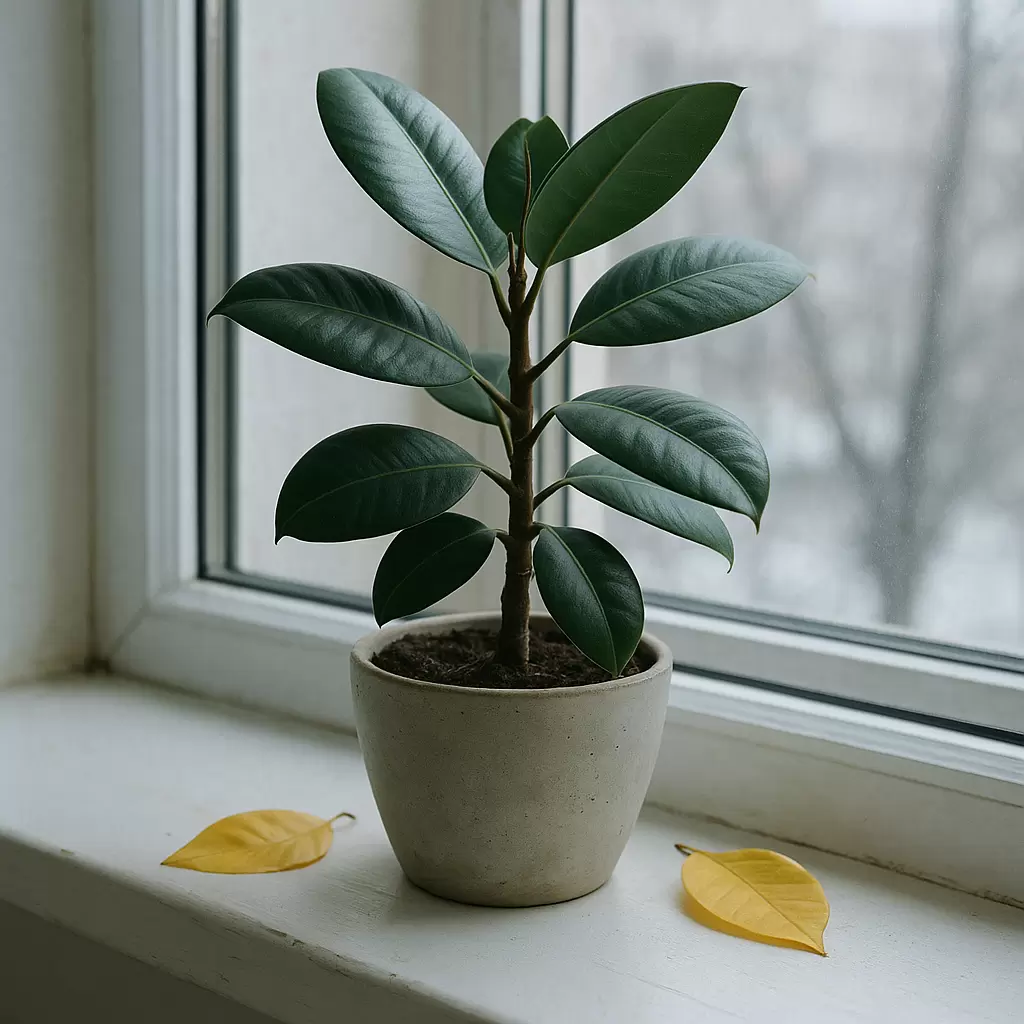 Фикус — это живое и чувствительное растение, которое может подвергаться стрессу из-за зимних условий: короткие дни, сухой воздух и колебания температуры провоцируют желтение и опадание листьев.