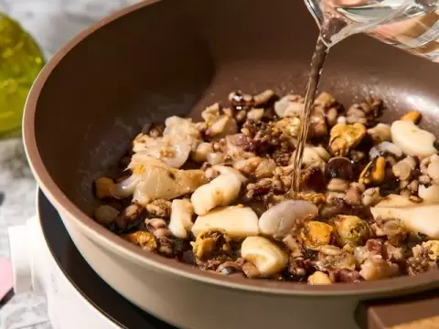 1. Подготовьте морепродукты, разморозив их, если они были заморожены, и тщательно промыв.
