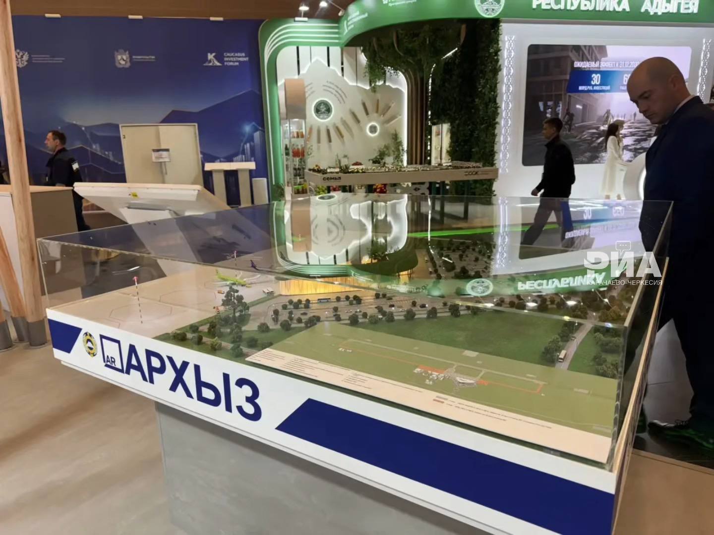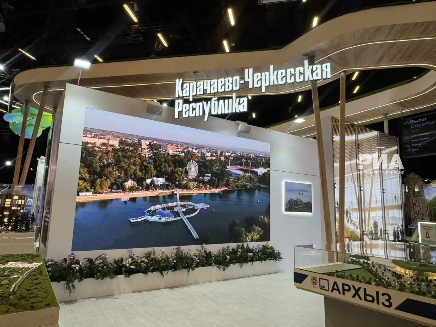 В экспозиции форума представлены стенды регионов. В основе экспозиции Карачаево-Черкесии – концепция современного аэропортового комплекса «Архыз». Здесь представлены макеты ключевых инвестиционных проектов, включая развитие курортной и транспортной инфраструктуры.